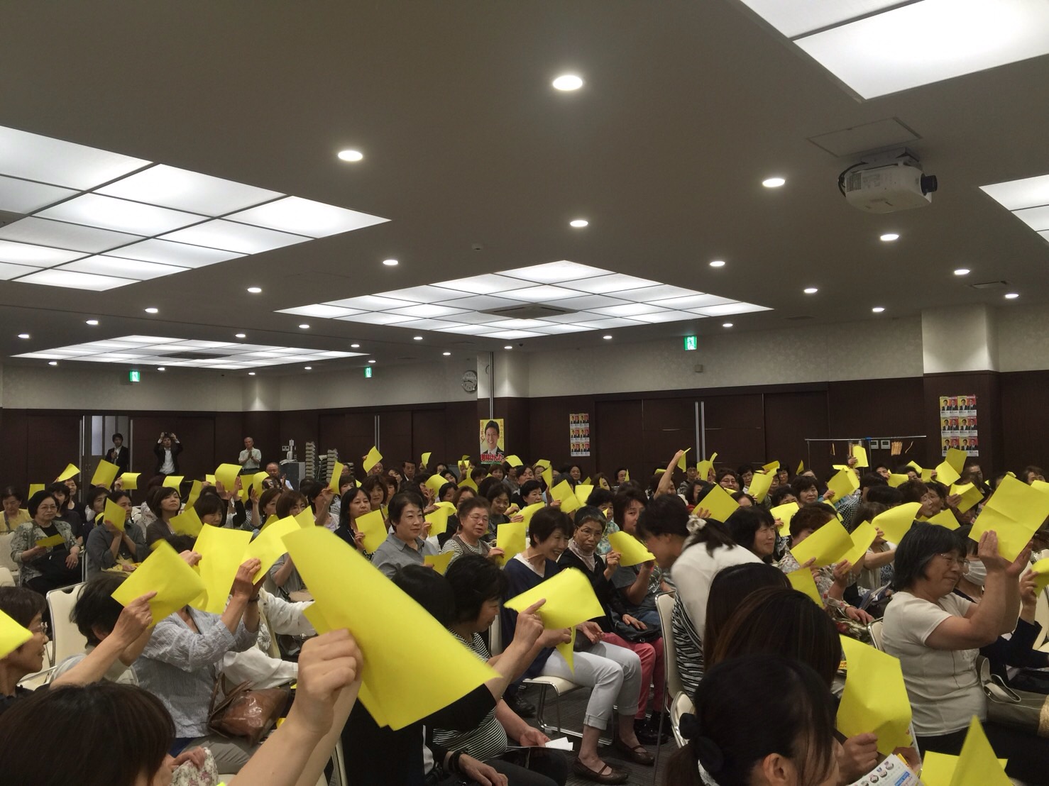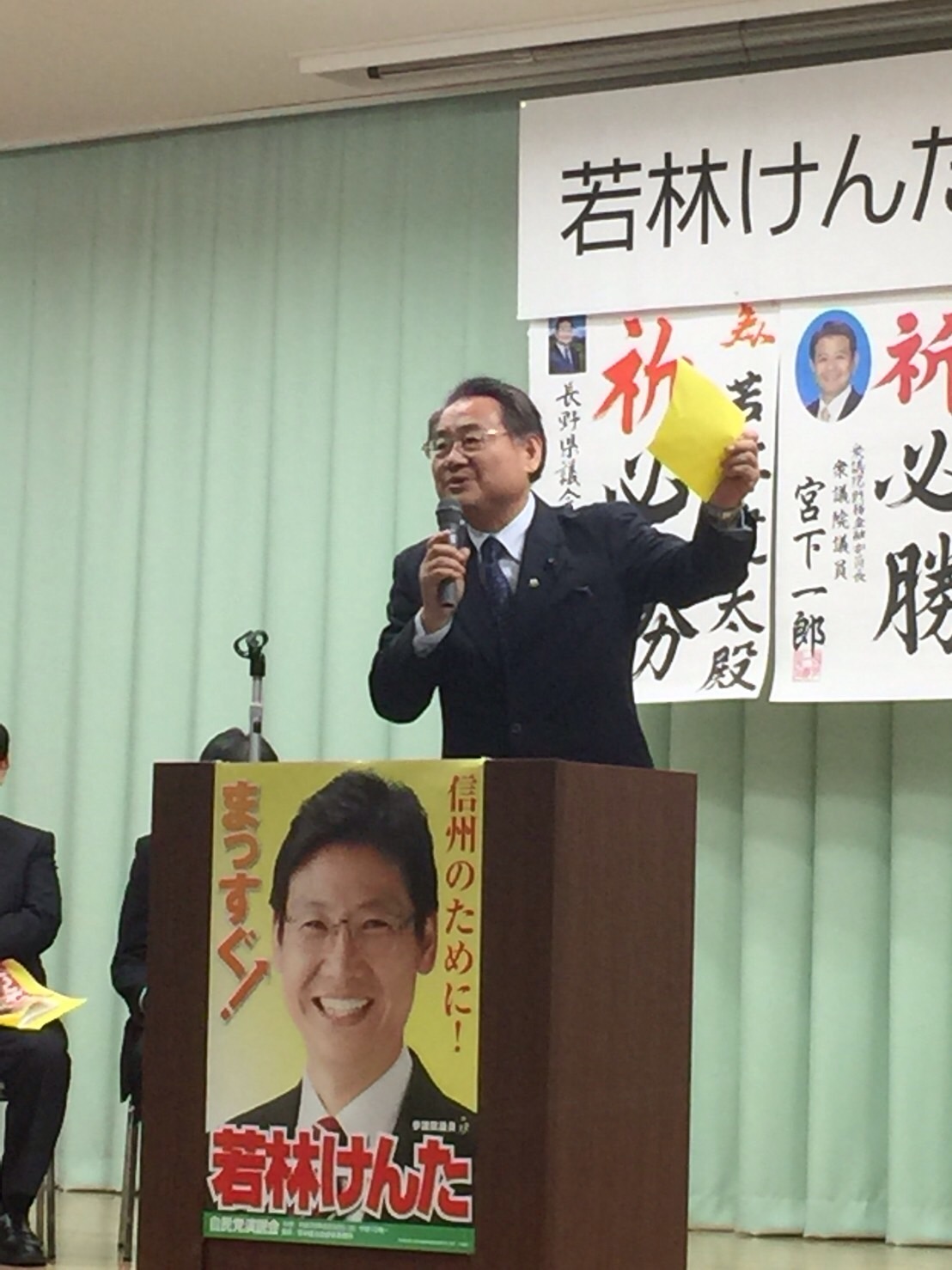 私も激励と今出来る選挙運動を紹介させて戴きました。 前女性活躍担当大臣有村治子先生が激励に参上して戴きました。 最後に吉田 博美参議院議員さんが泣かせる話を聞いて感激致しました。 最後に健太カラーの黄色い紙を使って激励致しました。
