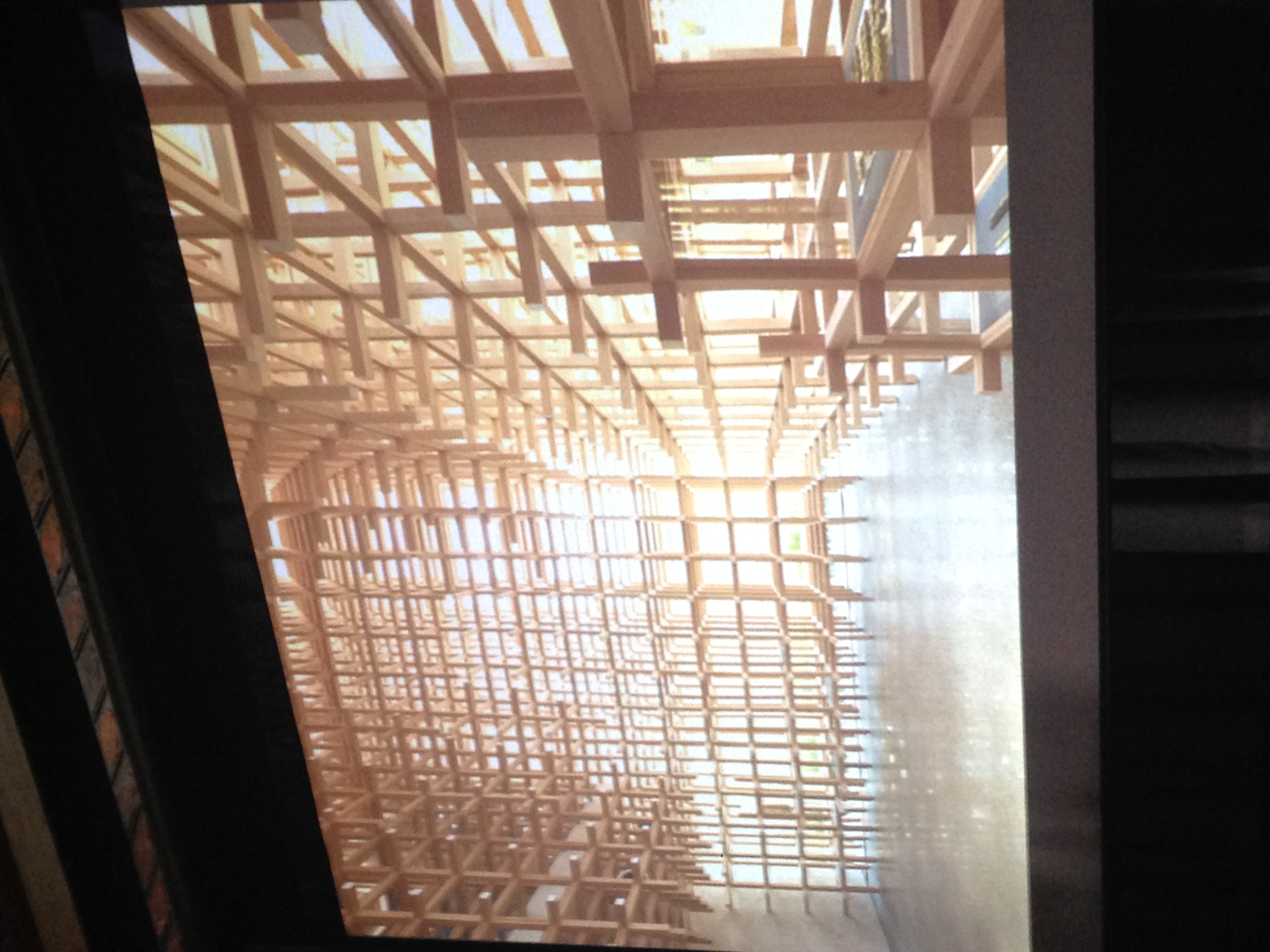 木の軸組みを活用したオブジェ。 オープンなスペース。 渋谷川を作り環境も人も自由な時間を楽しめる。 何れもこれも目からウロコの建築物でした。素晴らしい話をありがとうございました。 隈研吾先生に心より感謝申し上げます。
