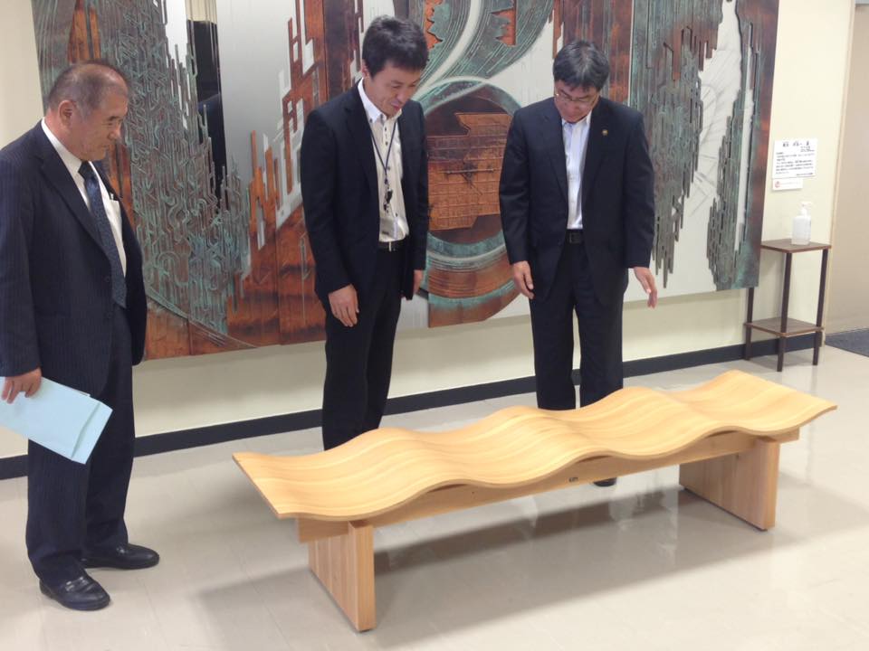 31日午前中、(株)小椋の会長・社長さんが駒ケ根市長を訪問し伊那谷産の唐松で作った長椅子を寄付をして戴きました。