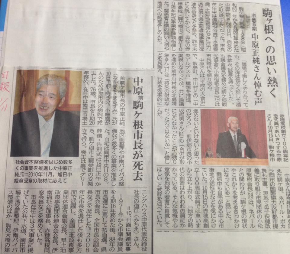 前駒ケ根市長中原正純氏が御逝去された事で、朝からお見舞いと夕方六時よりお通夜、枕経をさせて戴きました。