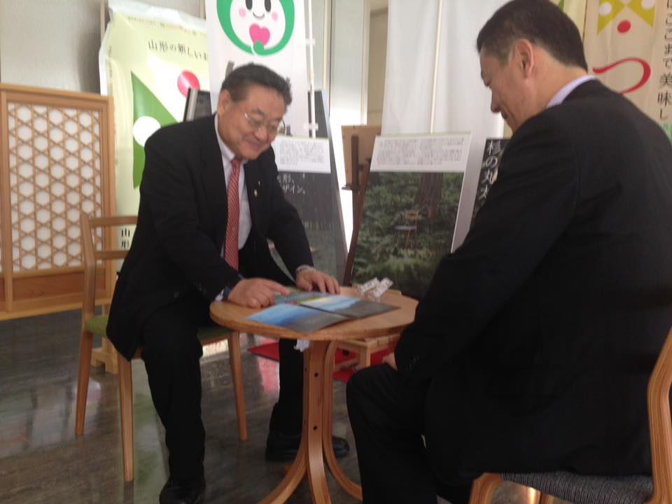 ![]() 県庁では、吉村知事さんの展示があり一緒に撮影。 ![]() 林業製品の話など聞かせて頂きましたよ。 ![]() 未来を山形の木と暮らしましょう。がキャッチでした。 ![]()
