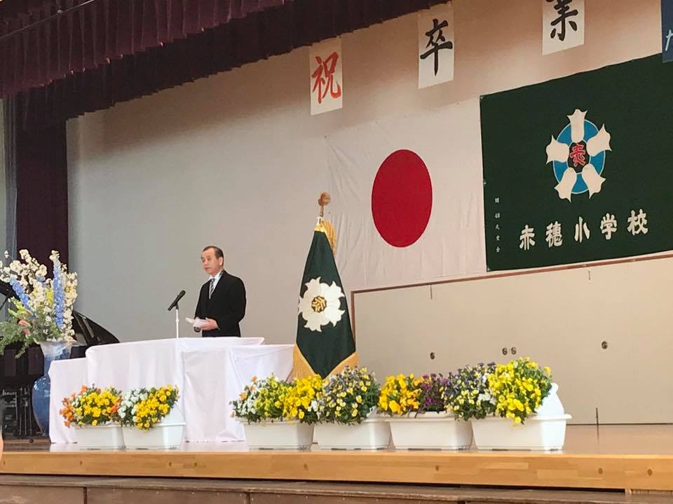 18日は、母校の赤穂小学校卒業式があり出席させて戴ました。