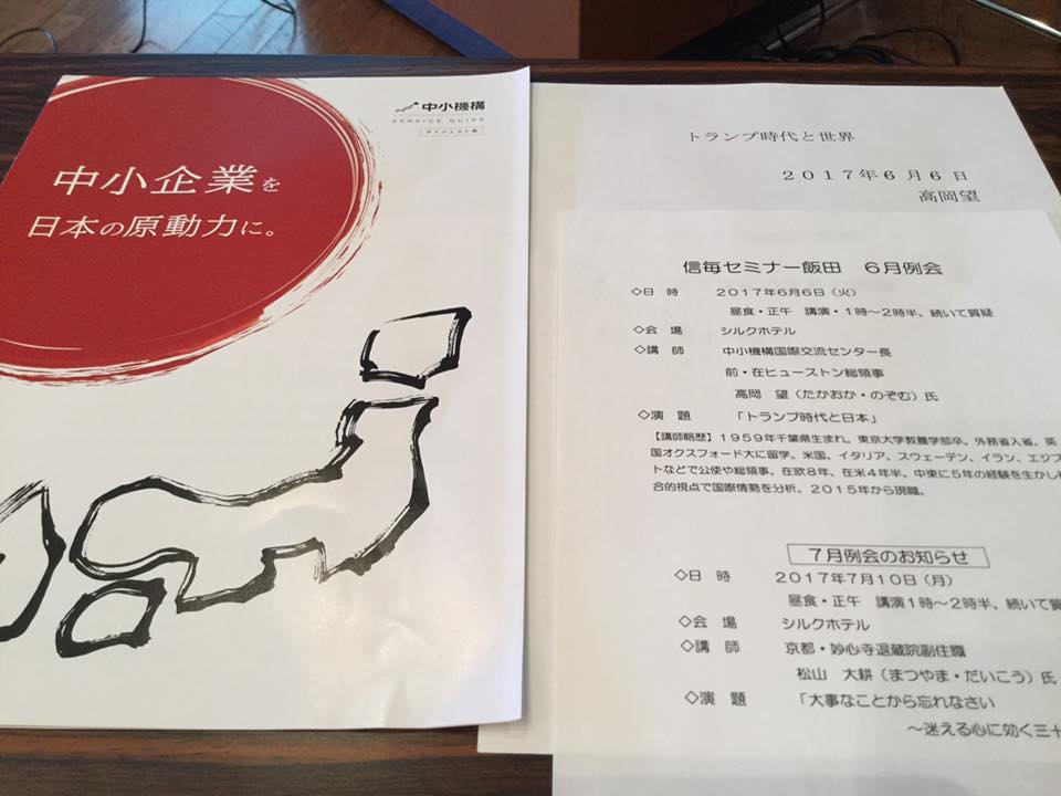 6日は、飯田市にて「信毎セミナー」に出席させて戴き勉強させて戴ました。