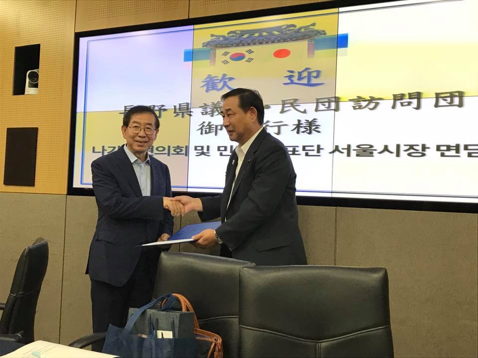 最後にソウル市長と協約に関わる意見交換をさせて戴き、朴元淳ソウル特別市長から、素晴らしい提案も戴きました。又、長野県知事の親書をお渡し是非長野県に来てくださいと申したら、以前長野県に来た事があり、来年選挙が終了したら、是非長野県に行きたいなど話されました。 金浦空港から松本空港に定期便について、協力したい🤝 地方間での親善が大事など友情を深めたいと話されました。 今回の訪韓では、かなり良い収穫があったと実感しています。明日の長野県発展に生かして行きます。 ![]() ![]() ![]()