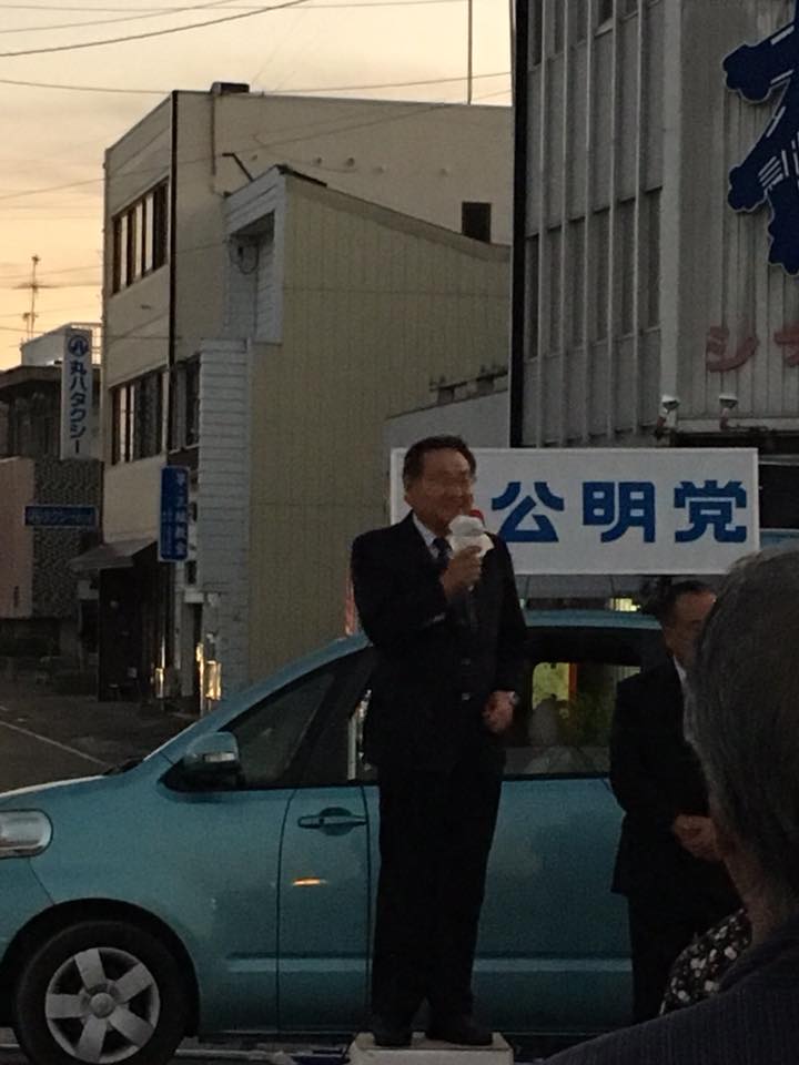 9日夕方、駒ヶ根駅前広場にて、公明党街頭演説会があり出席させて戴き、同僚でした太田 昌孝候補予定者の激励をさせて頂きました。