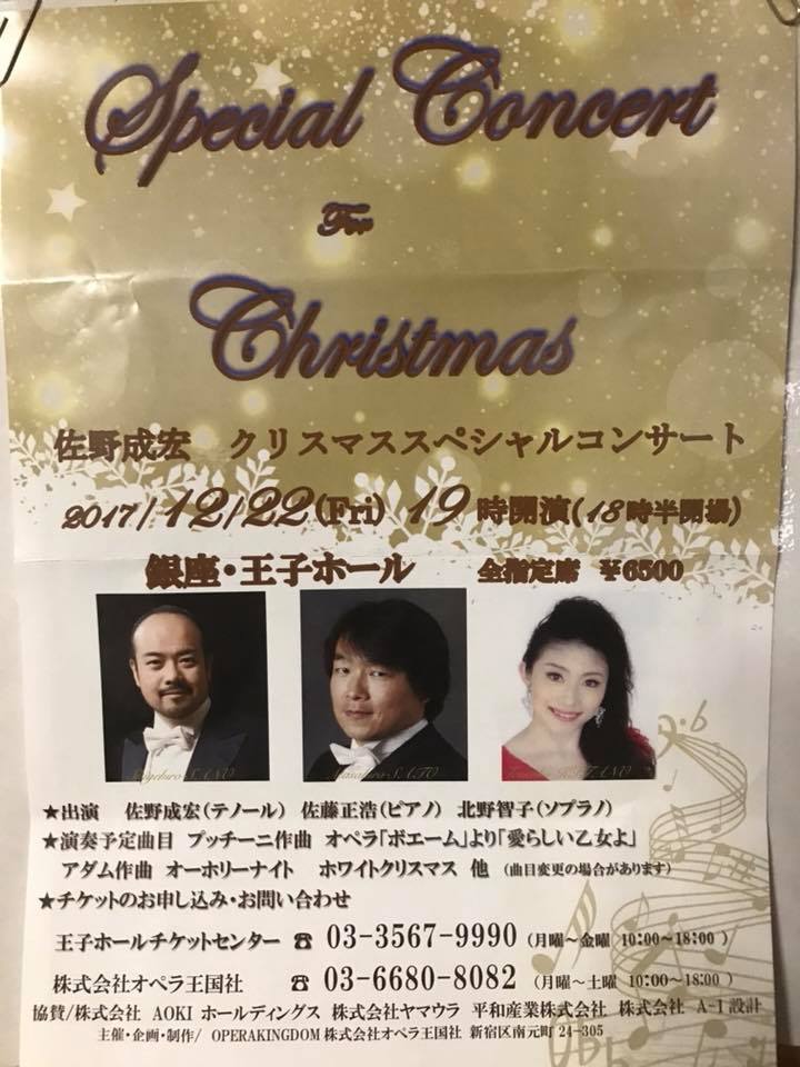 ![]() 同郷の皆様ですので、懐かしい話しに花が咲いてとっても素晴らしいひと時でした。 ![]() 世界のテノール歌手の佐野成宏先生夫妻も参加して下さいました。 ![]() 素晴らしい歌声を披露して下さいましたよ ![]() 佐野成宏先生のクリスマススペシャルコンサートが12月22日19時開演です。銀座王子ホールですよ。全席指定席ですので、お早目のご予約をお願い申し上げます。 ![]()