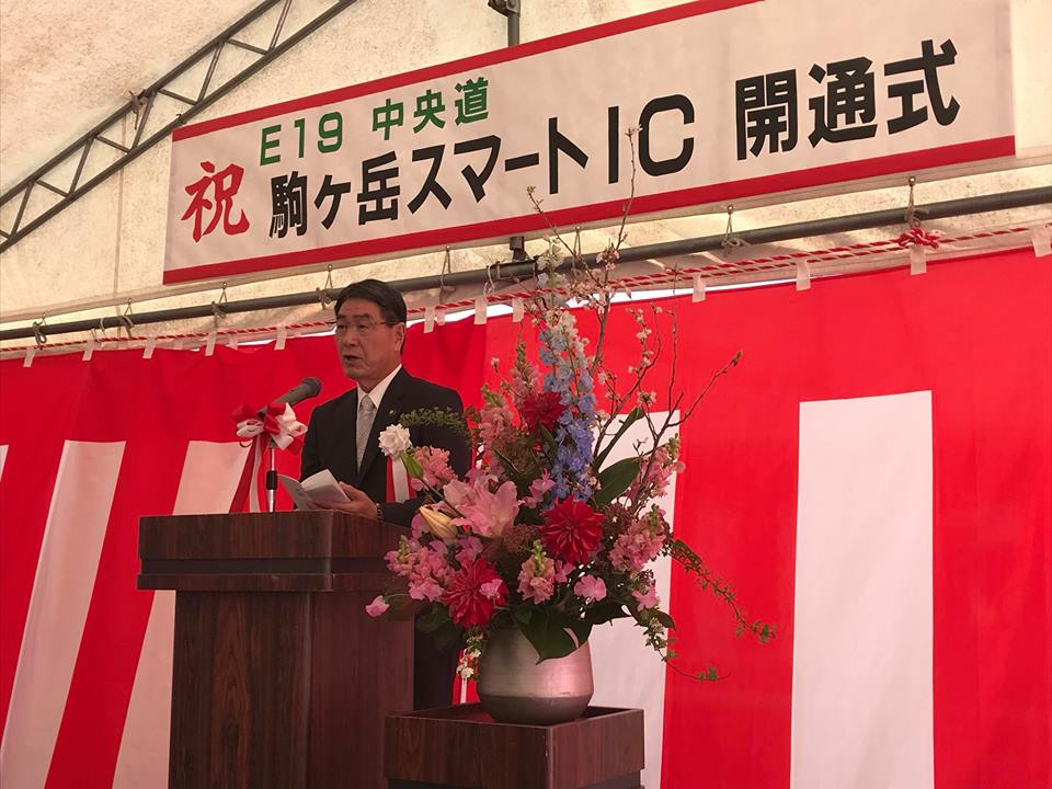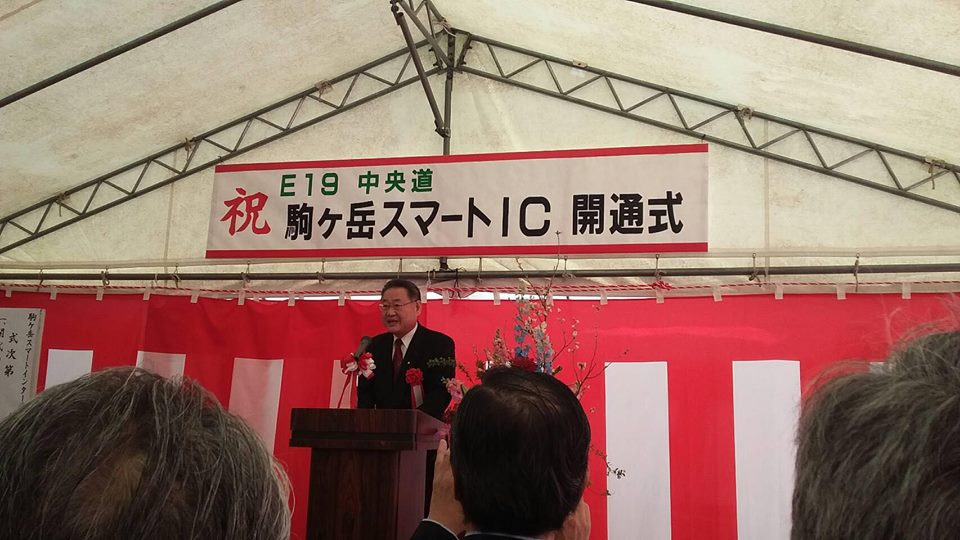 今日も積極一貫、明るく楽しく元気良く絶好調でお願い申し上げます ![]() 17日は駒ケ岳サービスエリアにて、スマートインター竣工式が行われ出席させて頂き祝辞を述べさせていただきました。 ![]() また、開通式にてテープカットなどさせていただき、皆さんでお祝いしました。 ![]() 新しい駒ヶ根の姿が見えて来ました。よ。これからの地域振興が楽しみです。 ![]()