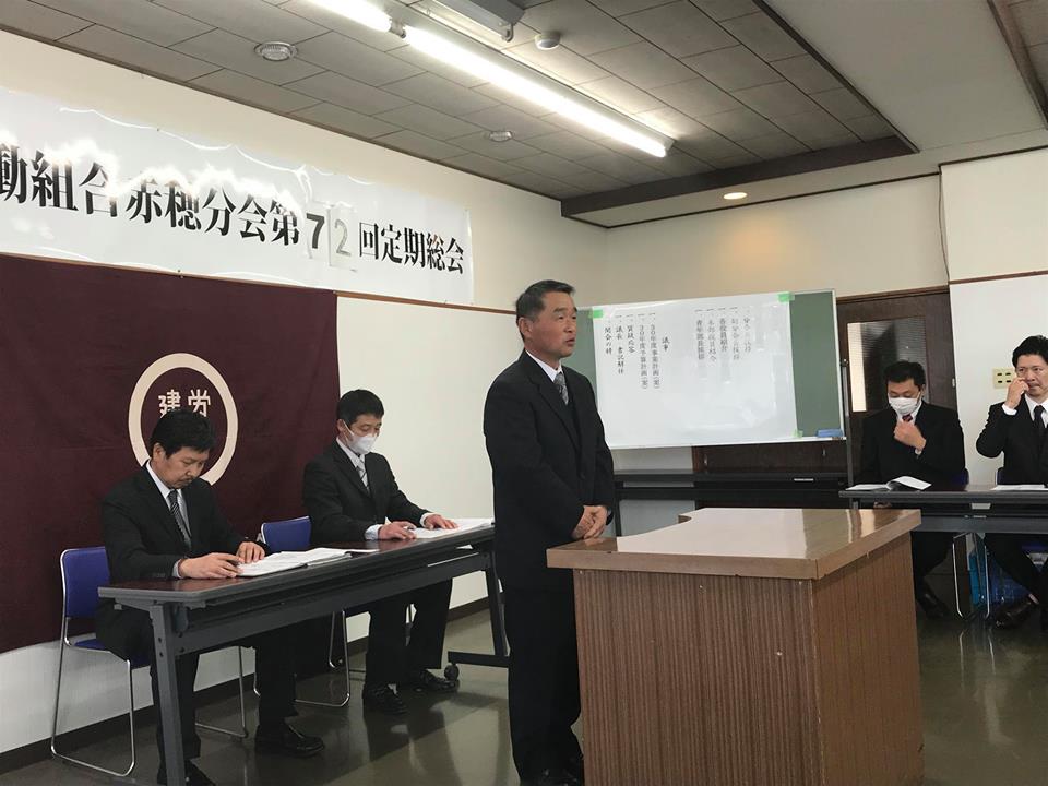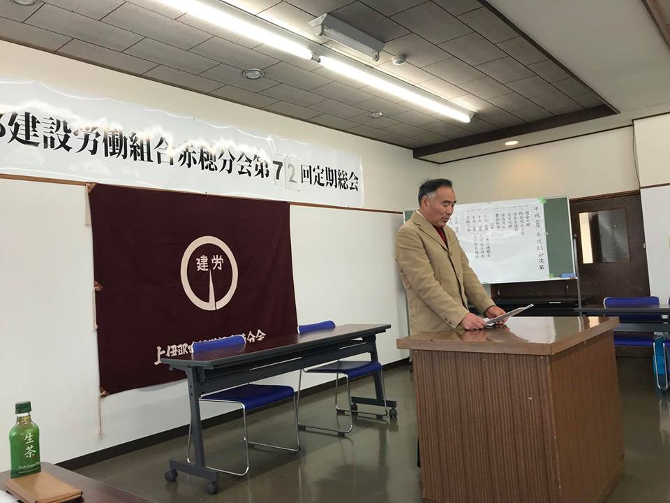 1日、日曜日は午後4時から、上伊那建設労動組合赤穂分会の72回定期総会があり出席させていただき祝辞を述べさせていただきました。