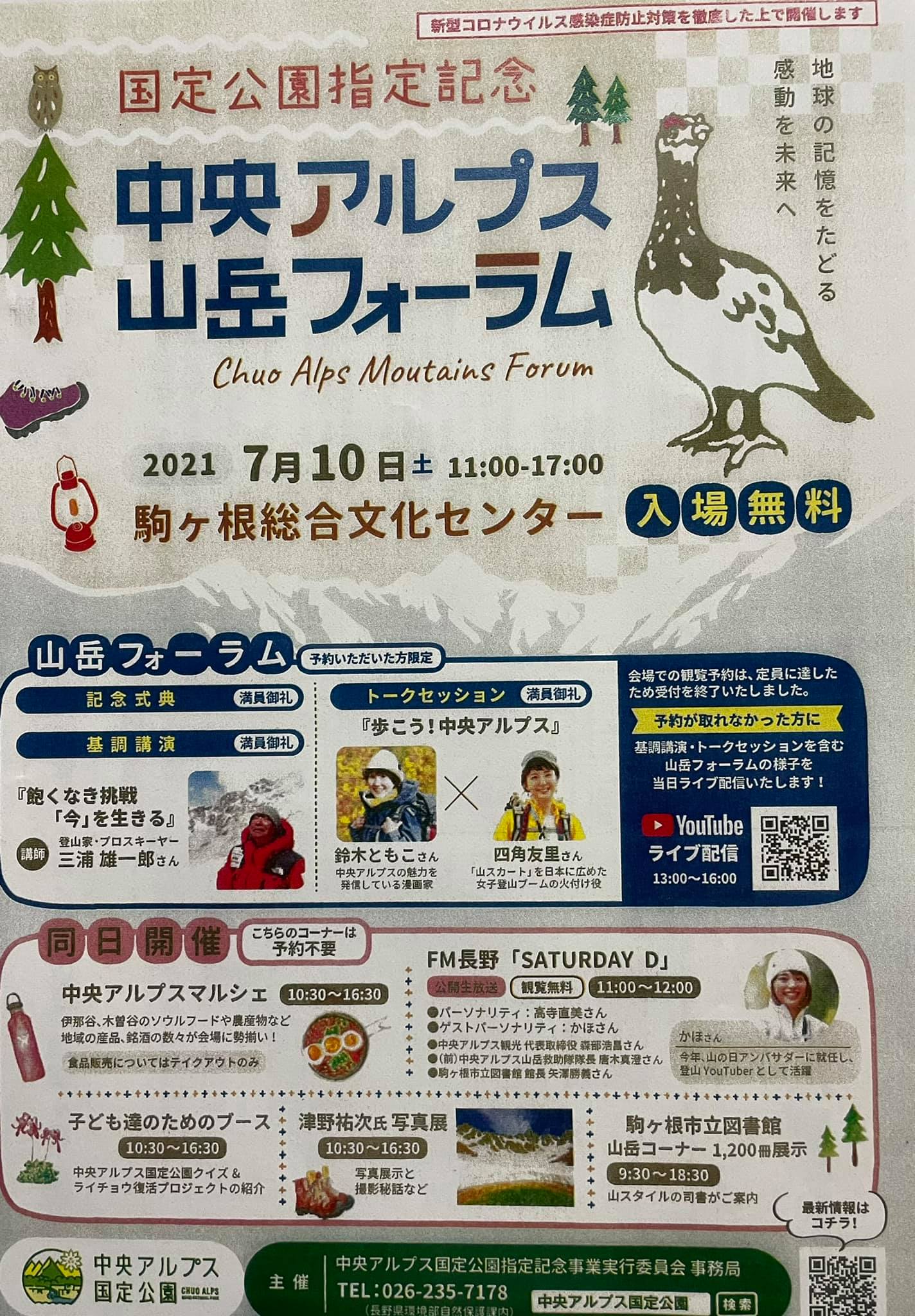 皆さん、おはよう御座います☁️ 今週も 絶好調で顔晴リましょう。  7月10日中央アルプス山岳フォーラムが開催されます。 コロナ禍ですので、縮小して行う予定ですが、密にならずに工夫しています。 ご来場をお待ちしてます。 事務所にご意見・要望などお越しいただいています。  皆さんご遠慮なくお越しください。電話などして下さい。   今日一日コロナ禍対策に気を付けて、明るく楽しく元気良く爽やかにいきましょう。