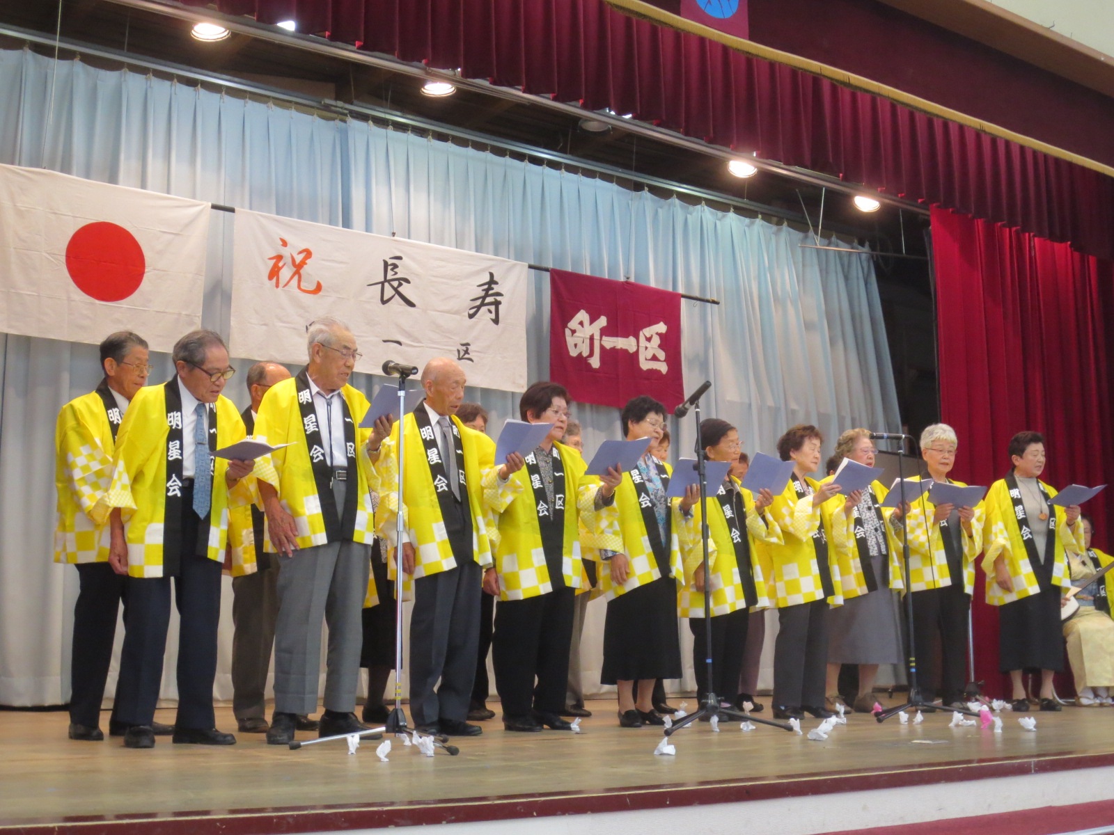 10時30分地元町一区の敬老会に出席させて戴きました。 七年後のオリンピック観戦と14年後のリニア新幹線に乗車を目標に頑張りましょうと挨拶させて戴きました。 皆さん明るく楽しく元気良く演芸大会を楽しんでいました。 私は、その後、もみじクラフト展、長野市の講演会と絶好調でした。