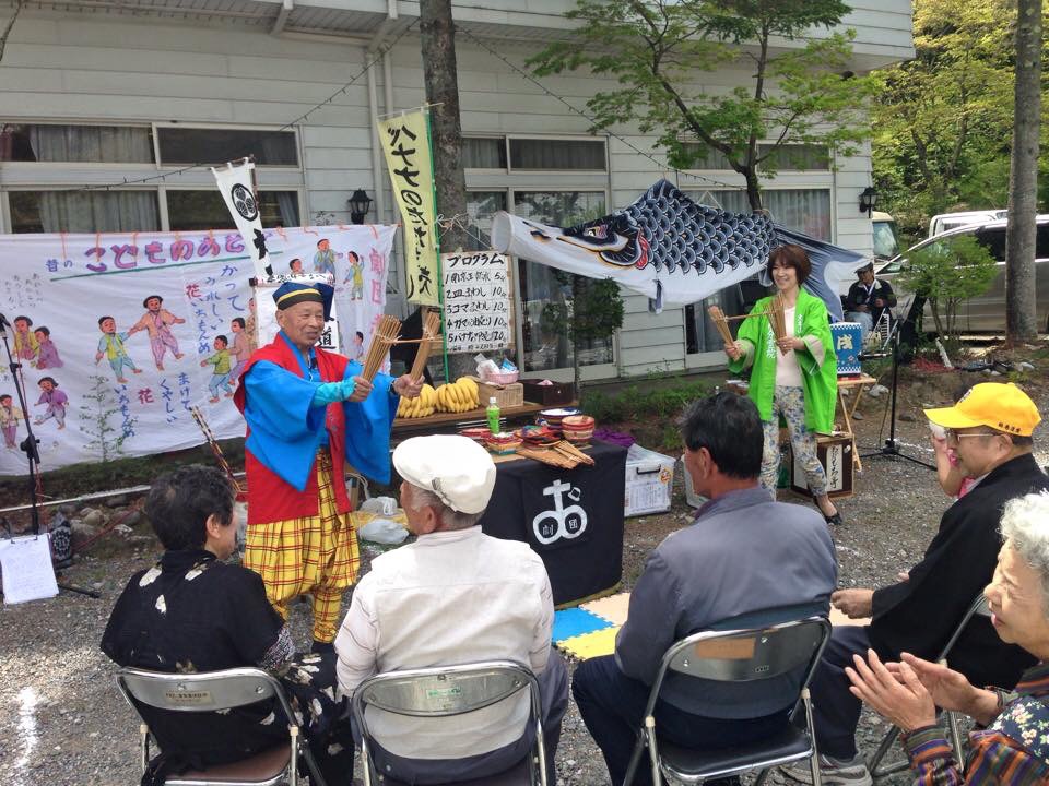 大護摩修行終了後、お念珠お授けをしていただきました。御利益大ですかね。 パホーマンス大会では、バナナの「叩き売り、南京珠すだれ、がまの油など大道芸で賑やかでした。 続いて演歌体操の皆さんです。 大正琴の大原さんが飛び入りで演奏してくださいました。 3時まで賑やかに楽しく元気よく行われました。
