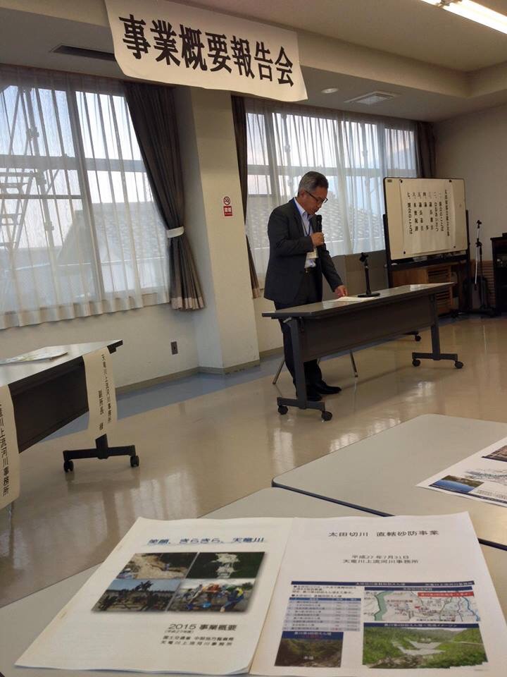 聡会後、天竜川上流河川事務所副所長より事業説明があり話を聞かせていただきました。 よくわかり参考になった説明会でした。 今後とも宜しくお願いいたします。