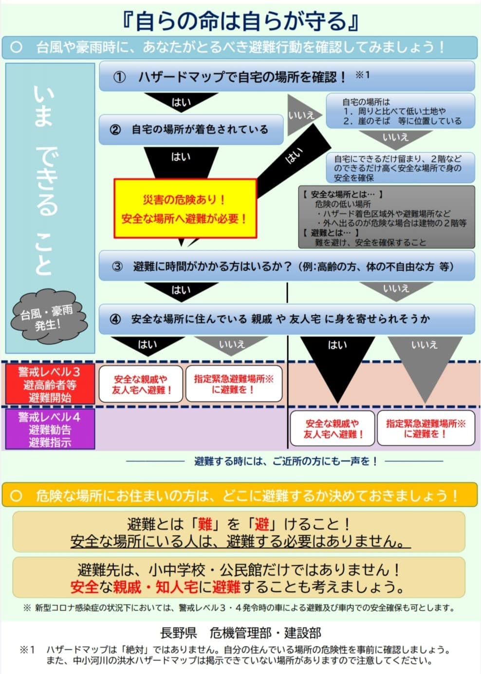 今日も積極一貫、絶好調で顔晴リましょう。 ![]() 長野県南部地方駒ヶ根市は、土砂災害警戒区域レベル4になりました。 ![]() 又今長野県にレベル5の大雨特別警報が出されました。 最大級の安全確保、命を守る事を第一に行動願います。 ![]() 昨日午前中は、市民県民相談室をさせて戴きました。コロナ対策・教育などの相談です。 ![]() これから雨☔️は強くなります、情報を得て命を守る行動をお願い申し上げます🤲