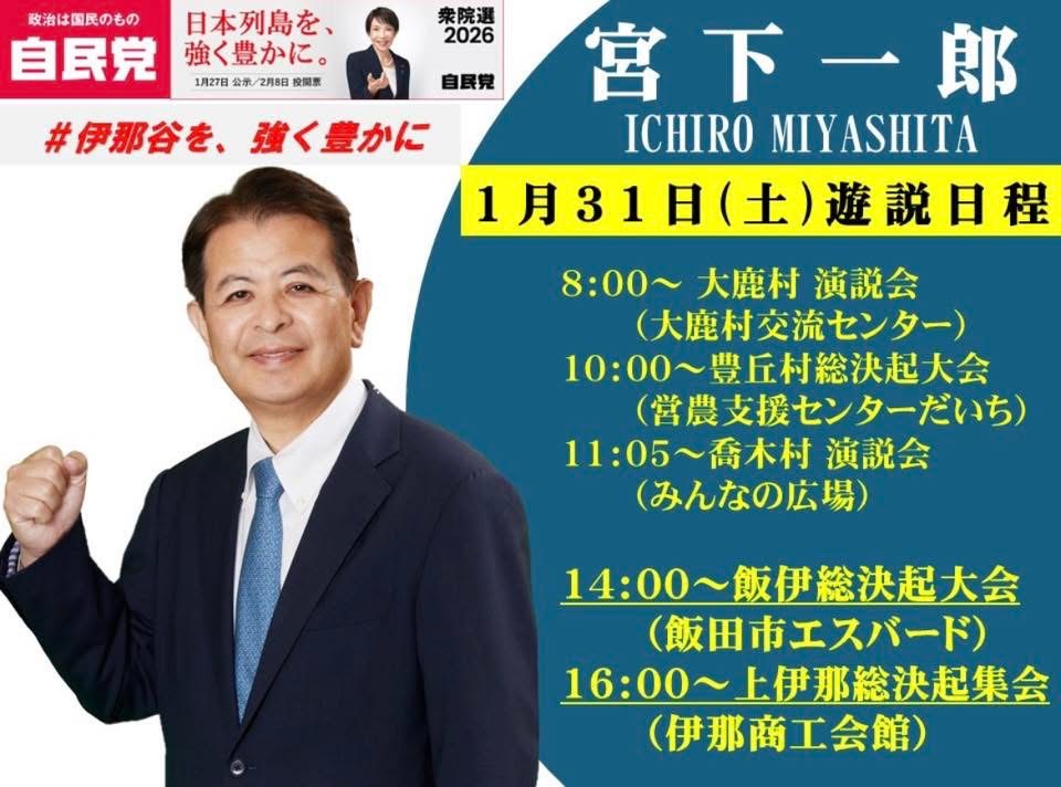 31日今日も輝く県政の灯火を頼りに,希望の光を信じて進んでいきましょう。 毎日が選挙運動,毎日が投票日です。 政権選択選挙です。 高市内閣が良いか🙆野田斎藤内閣が良いか。 今日は上伊那総決起集会です。脚をお運びください。 ![]() ![]() ![]()