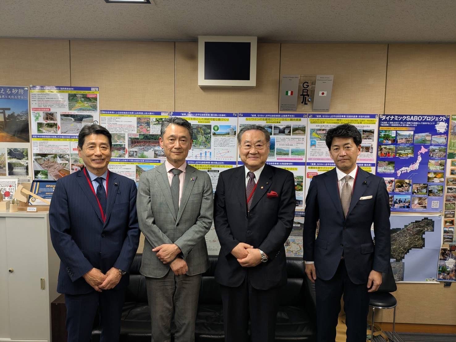 31日今日も輝く県政の灯火を頼りに,希望の光を信じて進んでいきましょう。 昨日30日は、午後から国土交通省道路局長・治水課長・砂防部長各課をご挨拶させて戴き,長野県の要望活動をさせて戴きました。 その後,砂防フロンティア機構にて天竜川上流河川や砂防状況について意見交換させて戴きました。 絶好調でしたよ。 日本を強く元気に。 ![]() ![]()