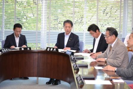 風間議長より、今回の災害をかんがみ、知事からの要請もあり、本日と1日の2日間延期し、各派代表質問は、10月2日3日としたい旨お話がありました、協議に結果そのように決定致しました。