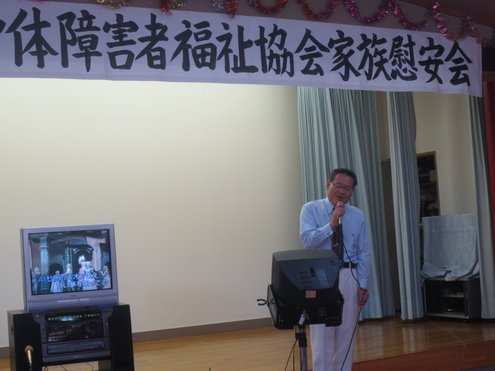 北原会長の挨拶で始まり、明るく楽しい慰安会ができました。 私も日ごろの県政から、心技体のこと、体は病んでいても、心は病んではいない。心を強く持って生きてくださいと挨拶させて戴きました。 オープニングでは、伊那市の方々による邦楽演奏がありました、素晴らし演奏でした。 私もカラオケをさせて戴き、慰安をさせて戴きました。