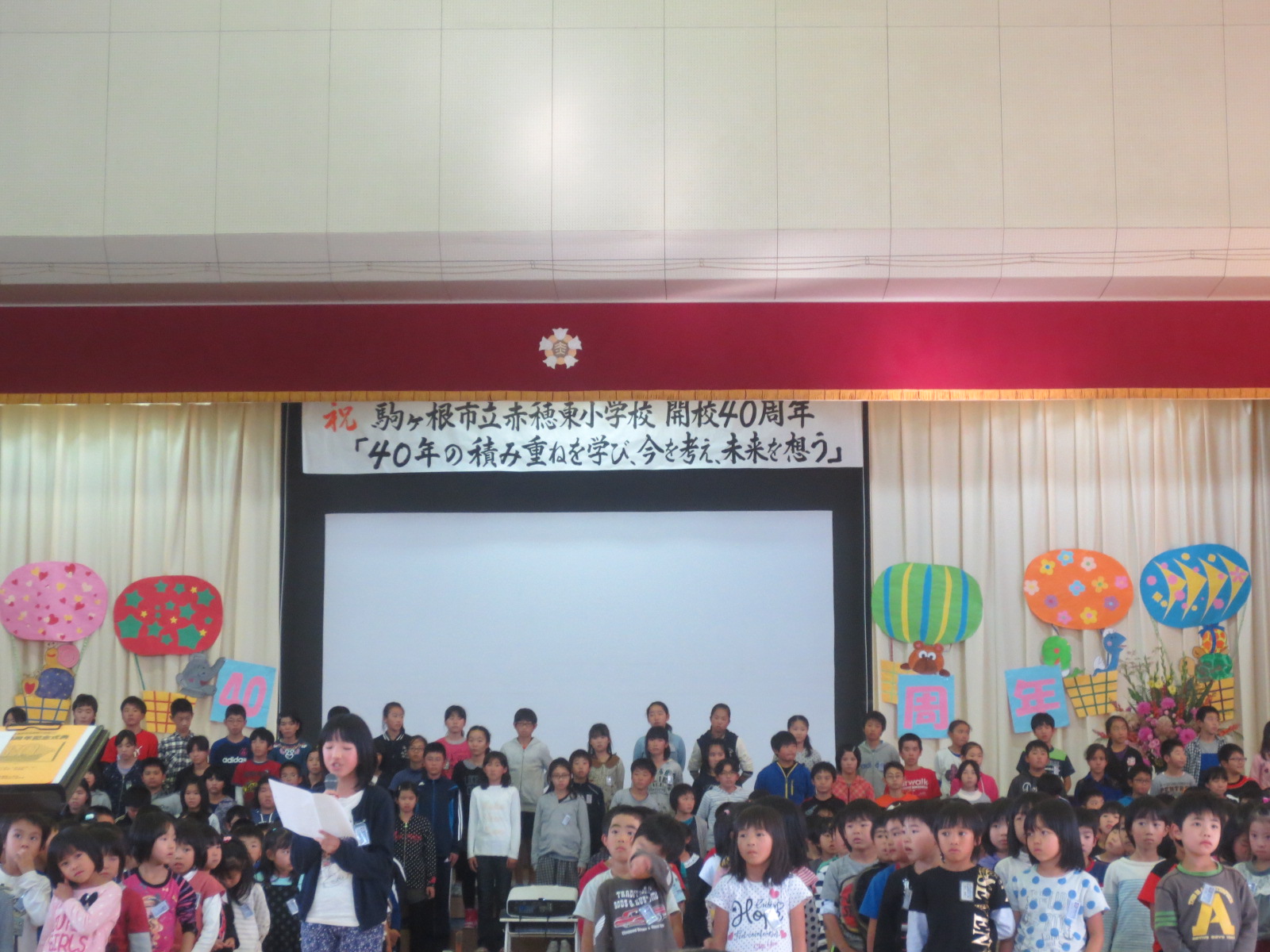 25日午後1時より、駒ヶ根市立赤穂東小学校創立40周年記念式典があり出席させて戴きました。