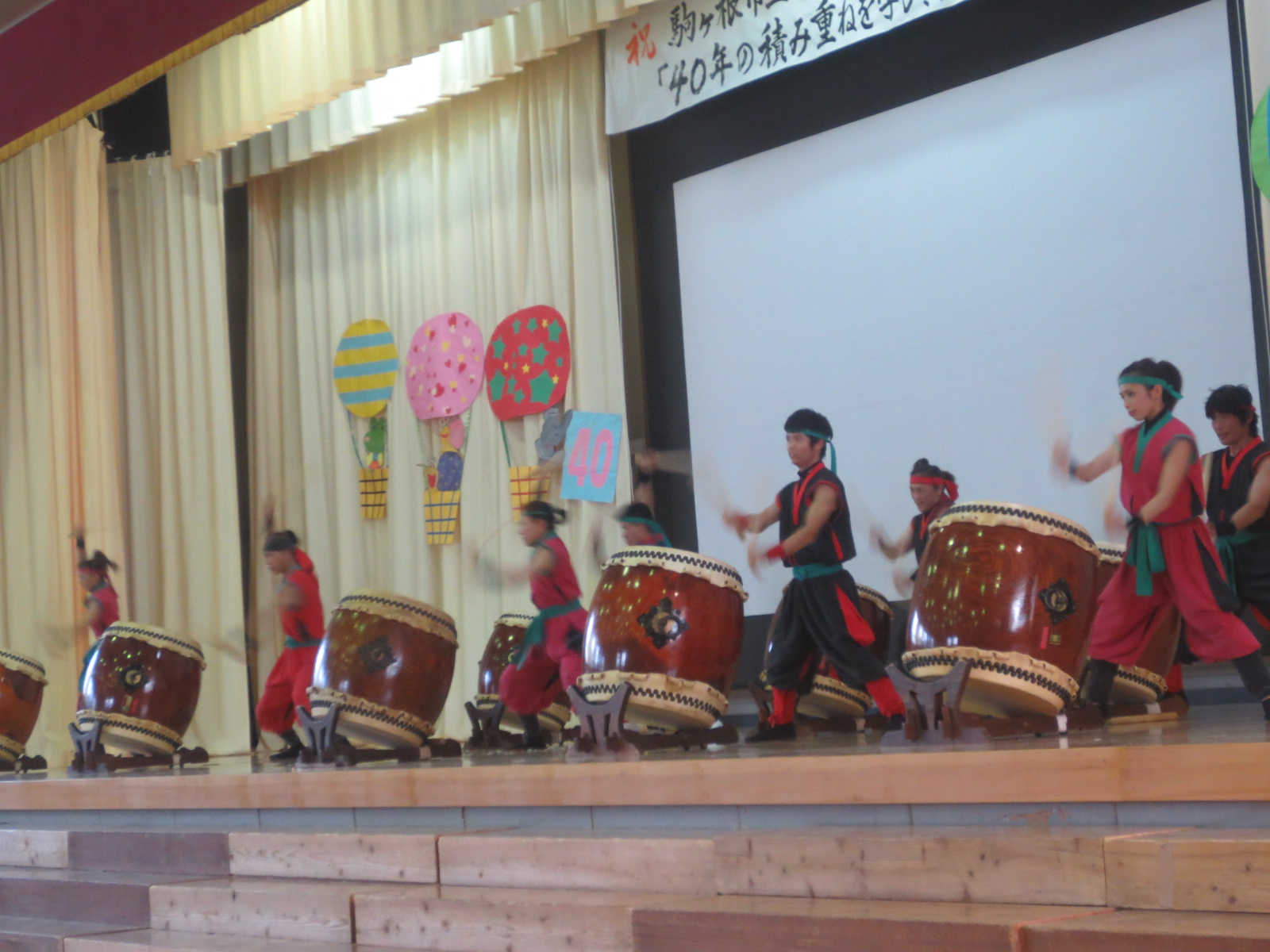 私は祝辞の中で、今までの感謝と性相近し、習相遠し。君子3楽。などを話、学を習うをもう一度検証し次の10年50周年に向けご努力をお願いしました。 子供達のカルタ発表など児童達の学習の成果、合唱など披露がありました。 休憩の後、素晴しい太鼓の演奏がありました。 正しく胸を打つ・心に響き渡る演奏でした、ハポーマンスが素晴しい和太鼓でした。素晴しい40周年記念式典でした。