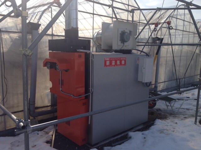 昨日松本市にあります、ハウス栽培の農家さんにバイオマスの温風機を調査研究させて戴きました。