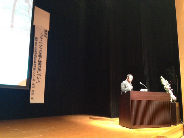 会長の挨拶の後、向山県議が来賓祝辞を述べました。 引き続き、泉山信州大学教授のツキノワグマのお話を拝聴させて戴きました。
