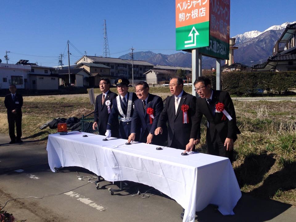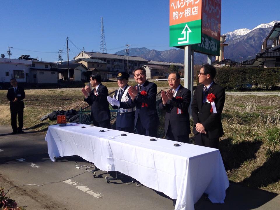 伊南バイパスの延伸でこの路線が交通量が多くなり、地域の方々から熱い要望がありました。 これで、ピカピカの一年生も安心安全な通学が出来ると思います。 明るく楽しく元気良く通学して下さいね。