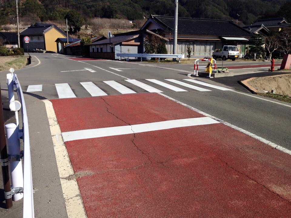駒ヶ根市中沢区吉瀬自治組合の県道伊那生田飯田線と市道との交差点に横断歩道を設置されました。