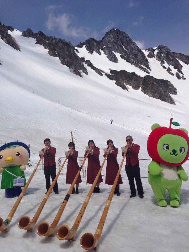 駒ヶ岳神社にて、白鳥宮司先導のもと安全祈願をし、祝詞奏上、お払いお清めをして、玉串奉奠をさせて戴きました。 その後、駒ヶ根アルプスホルン会のメンバーによります、演奏があり好天の下素晴らしい開山式が出来ました。 これから、いよいよ本格的な山シーズンです。安全第一で明るく楽しく元気良くいきたいものです。