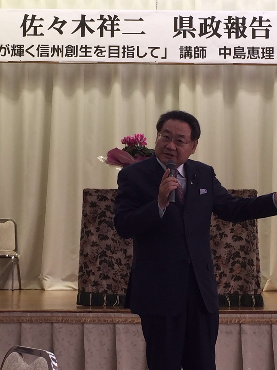 講師に長野県副知事中島恵理さんをお招きをし、女性が輝く地方創生を目指してと、題して講演をして戴きました。 その後私が県政報告をさせて戴きました。 認知症対策、ここ駒の大学院構想、長野県リハビリセンターサテライト駒ヶ根、認知症認定看護師の充実など話をさせて戴きました。
