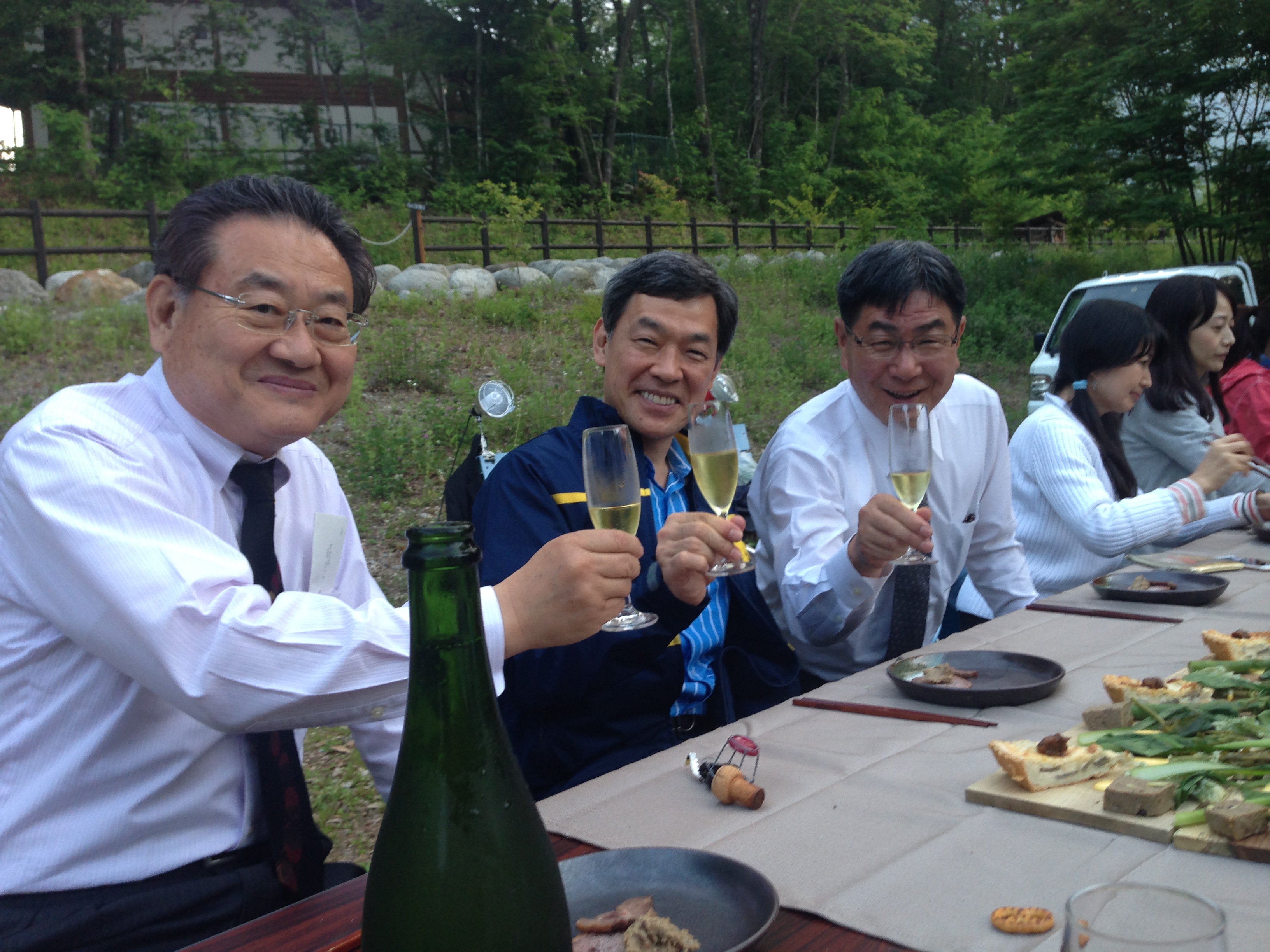 講演会後、駒ヶ根市長・市議会議長と私で写真を撮って戴きました。 その後バーベキューとキャンプファイヤーなども楽しみました。 盛り上がりましたよ。