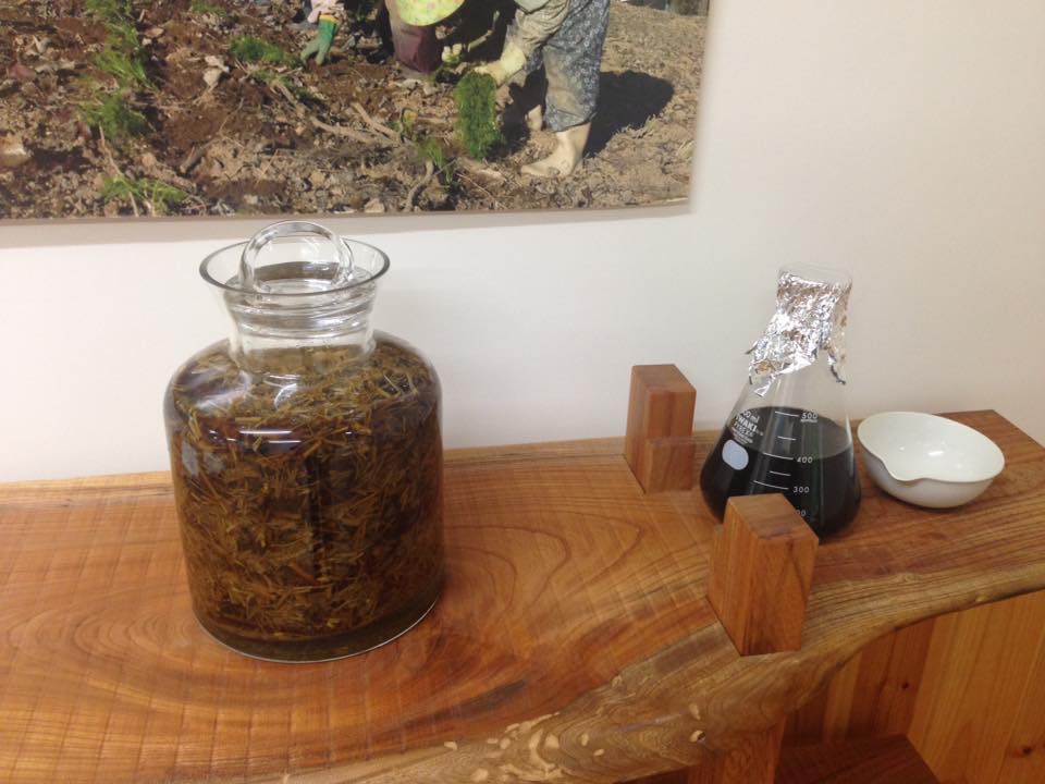 総て手作りでした。カモミールを手刈りして、干して乾燥し、刻んで発酵液にてエキスを抽出するそして再度繰り返し遠心分離機にて分離しエキス完成です。 それをお風呂、石鹸、などなど製品を幾つも作っています。 若者が頑張っています。無農薬野菜も見てきました。猿の被害が悲しい様です。