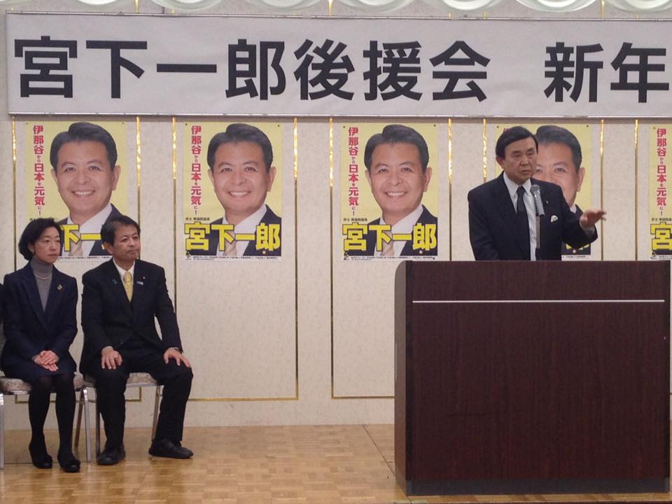 28日、午後5時から宮下一郎後援会新年祝賀会があり出席させて戴きました。