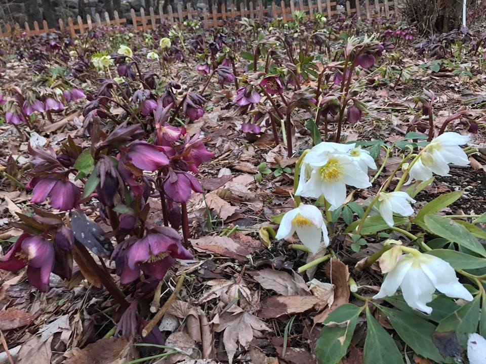 今、駒ヶ根高原の砂防ミユージアム・カブトの丘東側に、クリスマスローズが満開です〜。