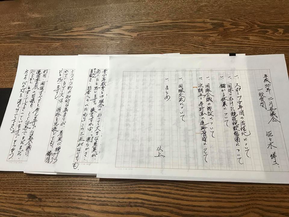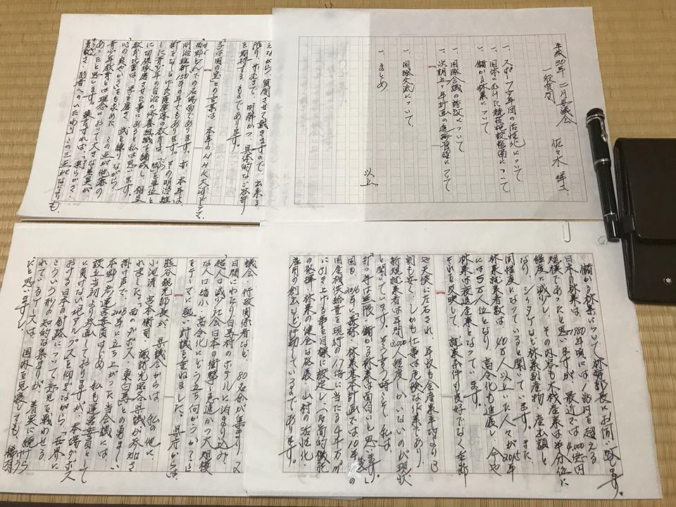 ![]() 宗会長と三世予定者と記念写真。 ![]() その後先輩達との懇談会でした。私は今も現役でやっています。よ。 ![]() ![]() 日帰りで帰り、一般質問の原稿書き、最終まとめです。