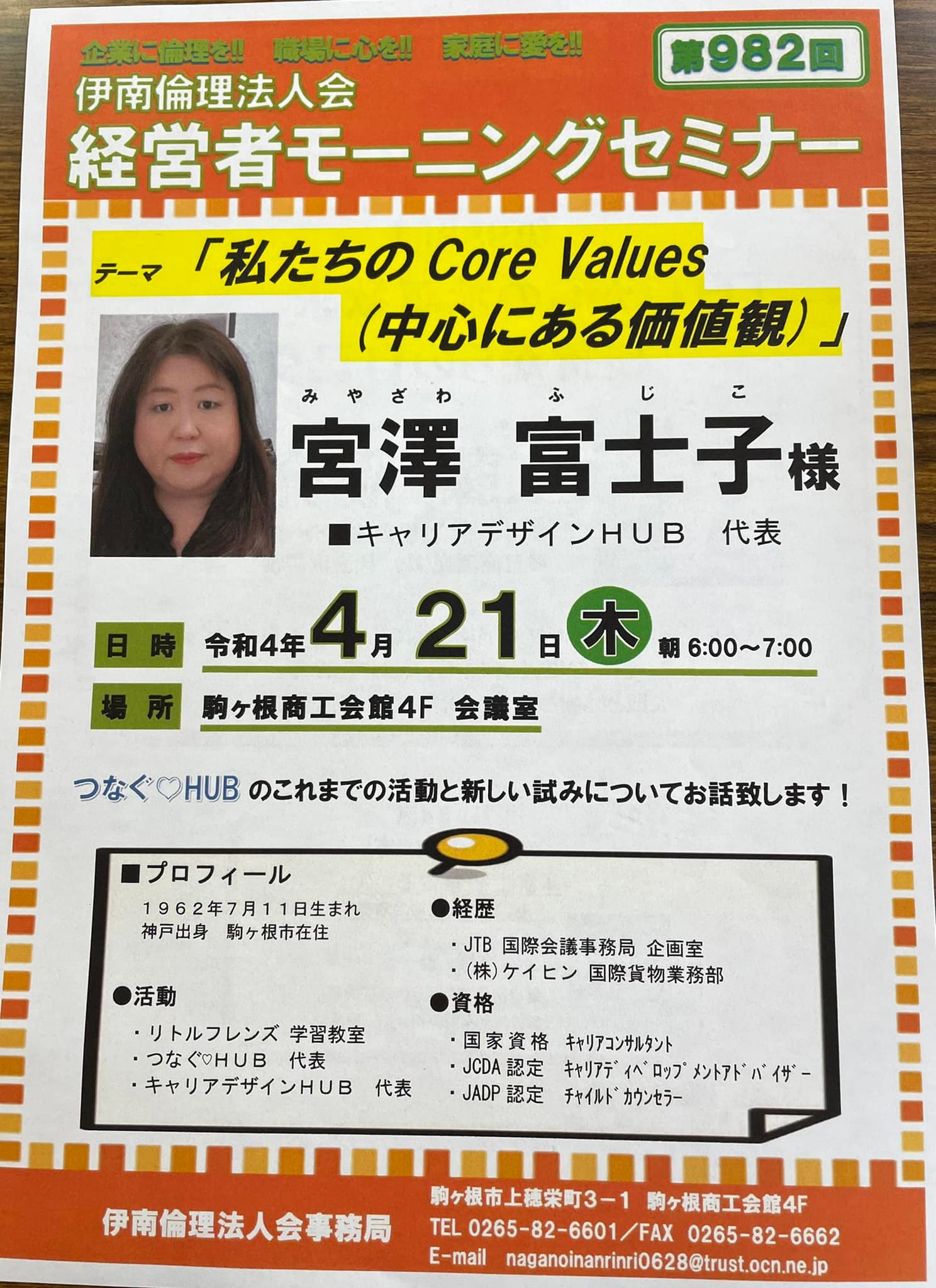 今日も積極一貫,絶好調で顔晴りましょう。 今朝モーニングセミナーに出席させて戴き勉強させて戴きました。 ![]() 講話者は宮澤富士子さんで様々な活動についてお話をして下さいました。 ![]() 素晴らしい活動中です。 ![]()